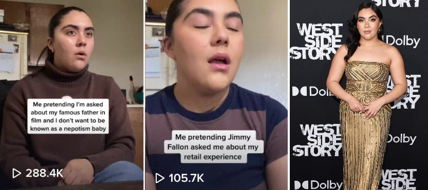 2.) Emily Uribe (@emilyuuribe) might be one of the most fascinating people on TikTok. She’s a college student with a retail job who ~manifested~ her way into celebrity. During quarantine, she started filming fake interviews where she pretended to be a celeb - a skill she perfected while running fan accounts. The videos went viral, and she’s now an invited guest at red carpet events and movie premieres!