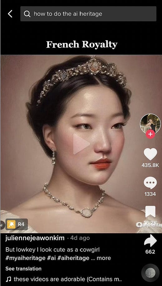 This week, two more AI avatar companies rose to prominence. Ancestry platform MyHeritage introduced “AI Time Machine,” which shows users what they’d look like in different historical time periods. These renderings cost $12 for a set of images. This went viral on TikTok, with thousands of users posting videos of their results. Similarly, AI photo app Lensa topped the App Store charts this week - users pay $3.99 for a set of 50 “Magic Avatars” in a range of styles.