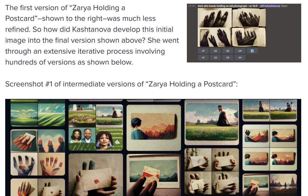 The author (Kris Kashtanova) and her lawyers argued that she followed a creative process similar to any artist using tools like a camera or Photoshop. While Midjourney technically generated the images, she wrote the prompts and iterated on the outputs hundreds of times to produce the final result.